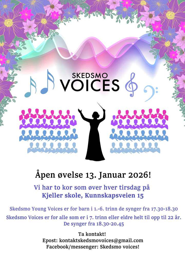 Den 3. september har vi åpen øvelse for Skedsmo Young Voices (1.-5. klasse) og Skedsmo Voices (6. klasse og oppover) på Skedsmo Samfunnshus – Meieriet.